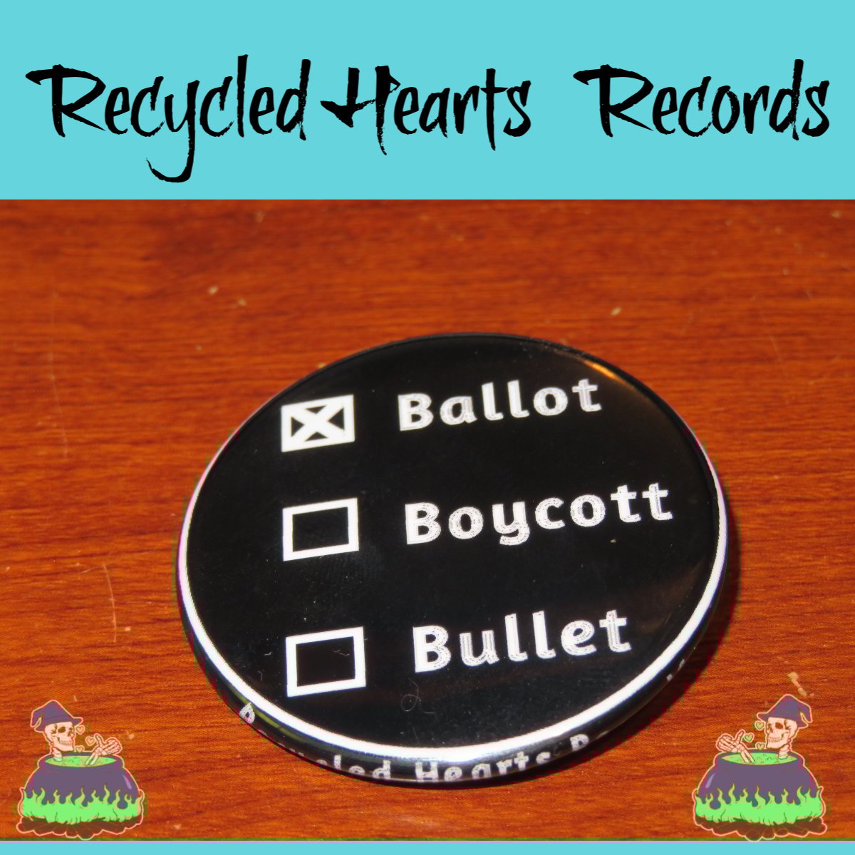 Malcolm X would deliver a speech called "The Ballot or The Bullet." Any change in government can be summed up to the 3 Bs. The first is the ballot such as voting. The second is boycott which could mean refusing to buy but also refusing to work. The Last B is the Bullet meaning revolutions as seen in France or Russia. This button helps serve as a reminder of those agents of change, and marks the one that has been used for the last century to little avail.
