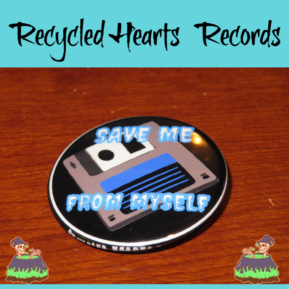 This is one of our most popular buttons along with "Still Emo" and "Dead Inside". I think its the floppy disc that really makes it sell?