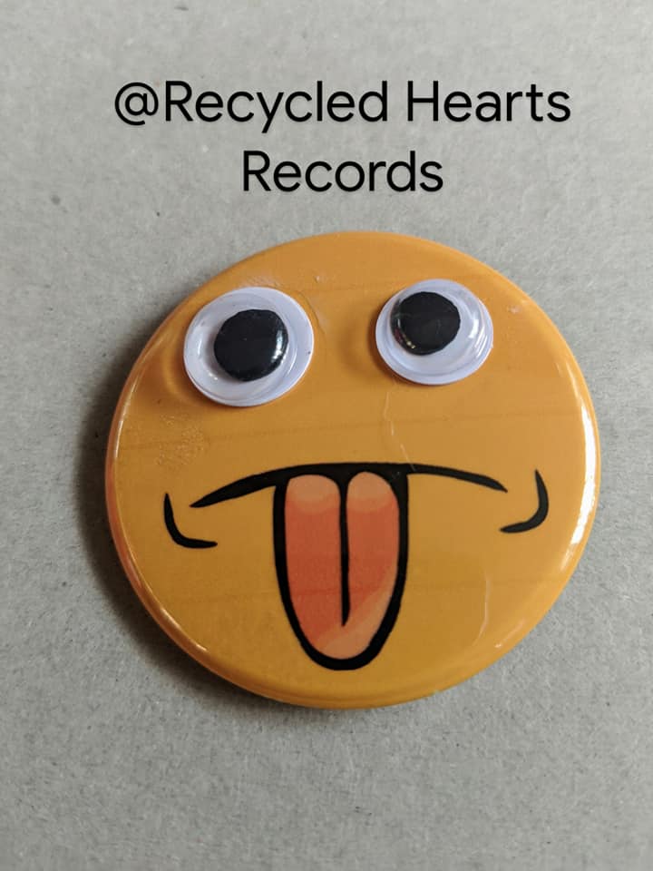 Our buttons are 1.75in which makes them a unique size that is both larger enough to make a statement and small enough to fit everywhere! All buttons are hand-pressed, metal-backing, and utilizes supplies that are “Made in the USA.” This makes them a high quality that can last daily wear and tear for years to come. Designs are property of Recycled Hearts Records.