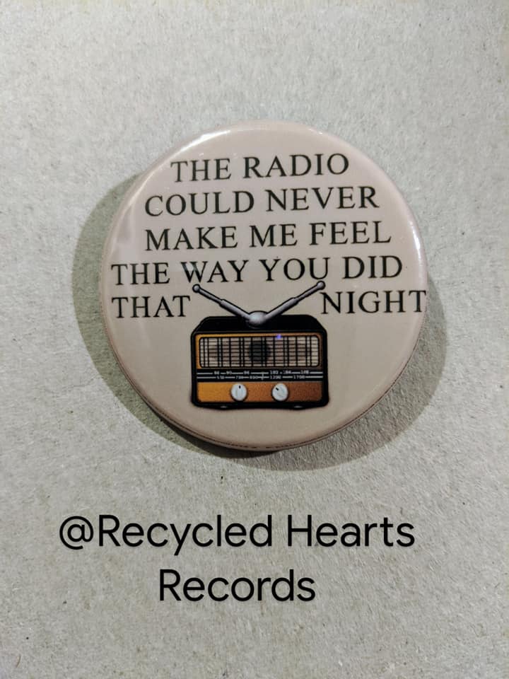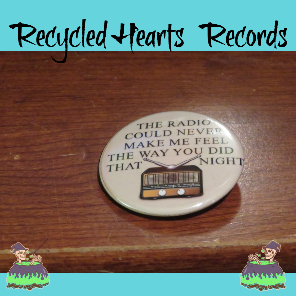 Our buttons are 1.75in which makes them a unique size that is both larger enough to make a statement and small enough to fit everywhere! All buttons are hand-pressed, metal-backing, and utilizes supplies that are “Made in the USA.” This makes them a high quality that can last daily wear and tear for years to come. Designs are property of Recycled Hearts Records.