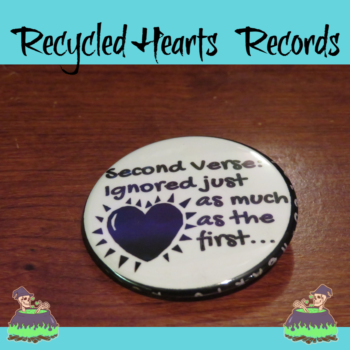 This a button inspired by the artist "Houseworth." Recycled Hearts Records had the pleasure of releasing their album "Sleeping with Ghosts Again" in 2019. The button has lyrics from a song on it, and a part of the proceeds of purchasing such button will be given back to the artist. Thank you!
