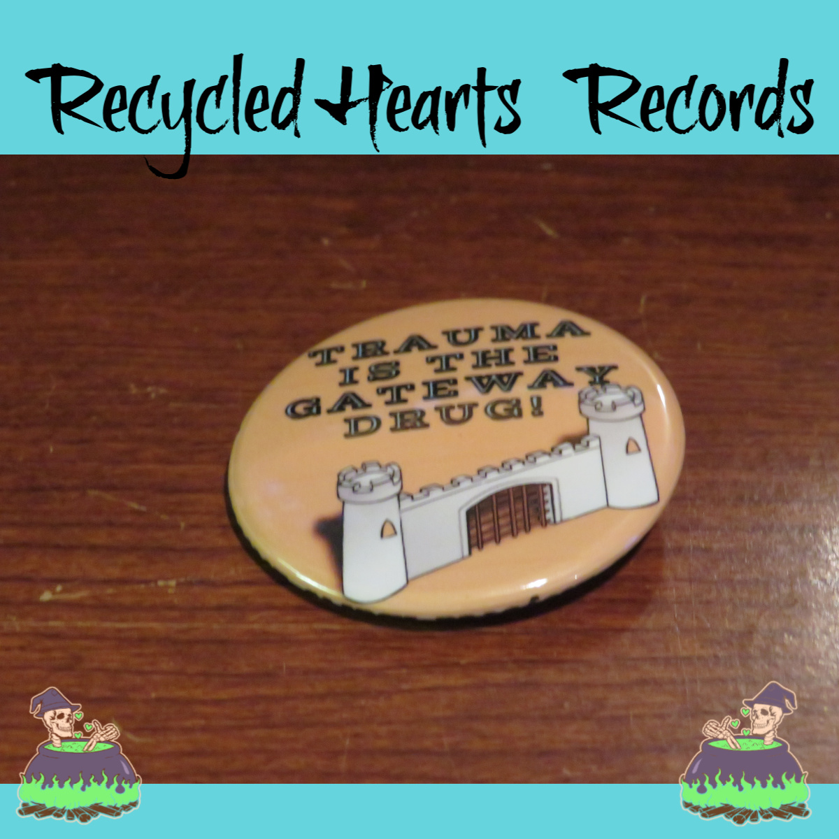 Our buttons are 1.75in which makes them a unique size that is both larger enough to make a statement and small enough to fit everywhere! All buttons are hand-pressed, metal-backing, and utilizes supplies that are “Made in the USA.” This makes them a high quality that can last daily wear and tear for years to come. Designs are property of Recycled Hearts Records.
