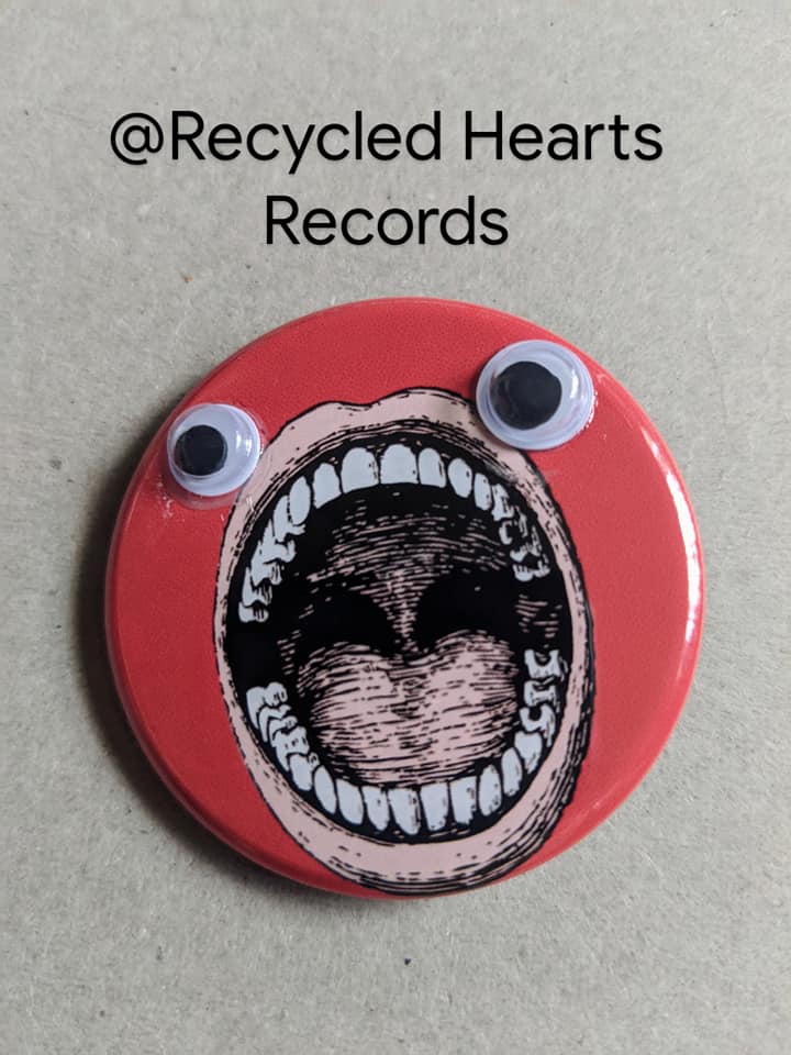 Our buttons are 1.75in which makes them a unique size that is both larger enough to make a statement and small enough to fit everywhere! All buttons are hand-pressed, metal-backing, and utilizes supplies that are “Made in the USA.” This makes them a high quality that can last daily wear and tear for years to come. Designs are property of Recycled Hearts Records.