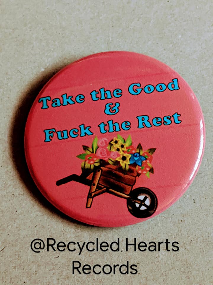 Our buttons are 1.75in which makes them a unique size that is both larger enough to make a statement and small enough to fit everywhere! All buttons are hand-pressed, metal-backing, and utilizes supplies that are “Made in the USA.” This makes them a high quality that can last daily wear and tear for years to come. Designs are property of Recycled Hearts Records.