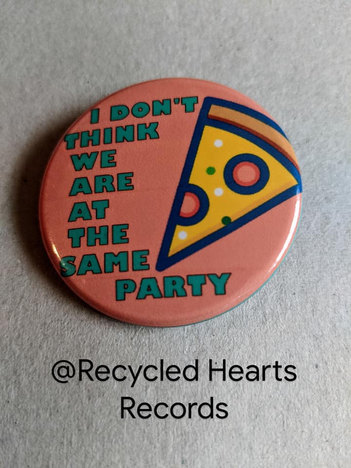 Our buttons are 1.75in which makes them a unique size that is both larger enough to make a statement and small enough to fit everywhere! All buttons are hand-pressed, metal-backing, and utilizes supplies that are “Made in the USA.” This makes them a high quality that can last daily wear and tear for years to come. Designs are property of Recycled Hearts Records.