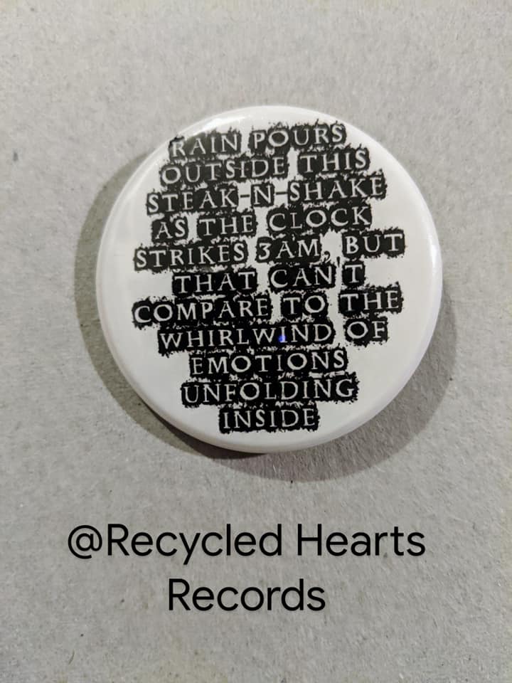 Our buttons are 1.75in which makes them a unique size that is both larger enough to make a statement and small enough to fit everywhere! All buttons are hand-pressed, metal-backing, and utilizes supplies that are “Made in the USA.” This makes them a high quality that can last daily wear and tear for years to come. Designs are property of Recycled Hearts Records.