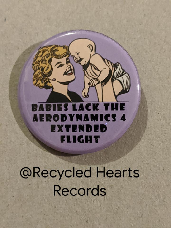 Our buttons are 1.75in which makes them a unique size that is both larger enough to make a statement and small enough to fit everywhere! All buttons are hand-pressed, metal-backing, and utilizes supplies that are “Made in the USA.” This makes them a high quality that can last daily wear and tear for years to come. Designs are property of Recycled Hearts Records.