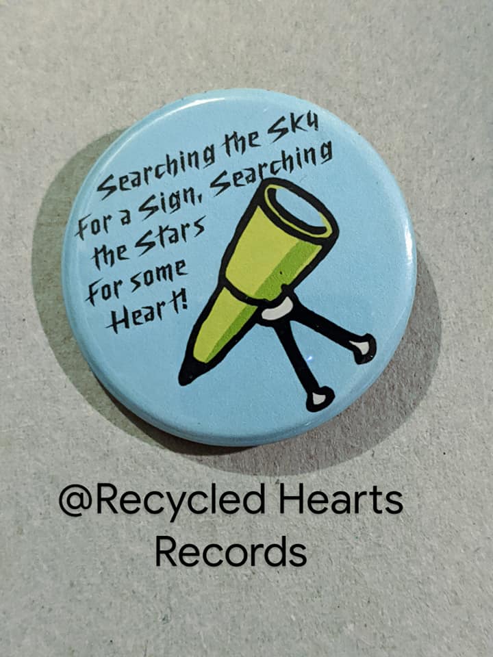 Our buttons are 1.75in which makes them a unique size that is both larger enough to make a statement and small enough to fit everywhere! All buttons are hand-pressed, metal-backing, and utilizes supplies that are “Made in the USA.” This makes them a high quality that can last daily wear and tear for years to come. Designs are property of Recycled Hearts Records.