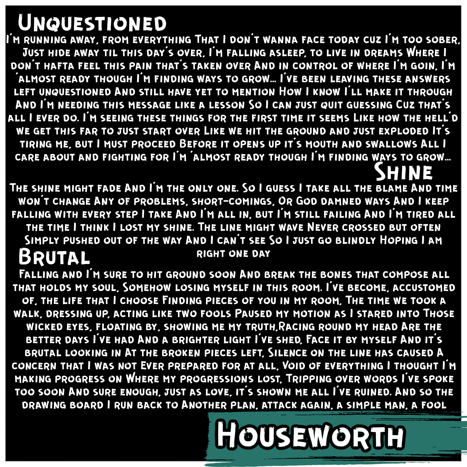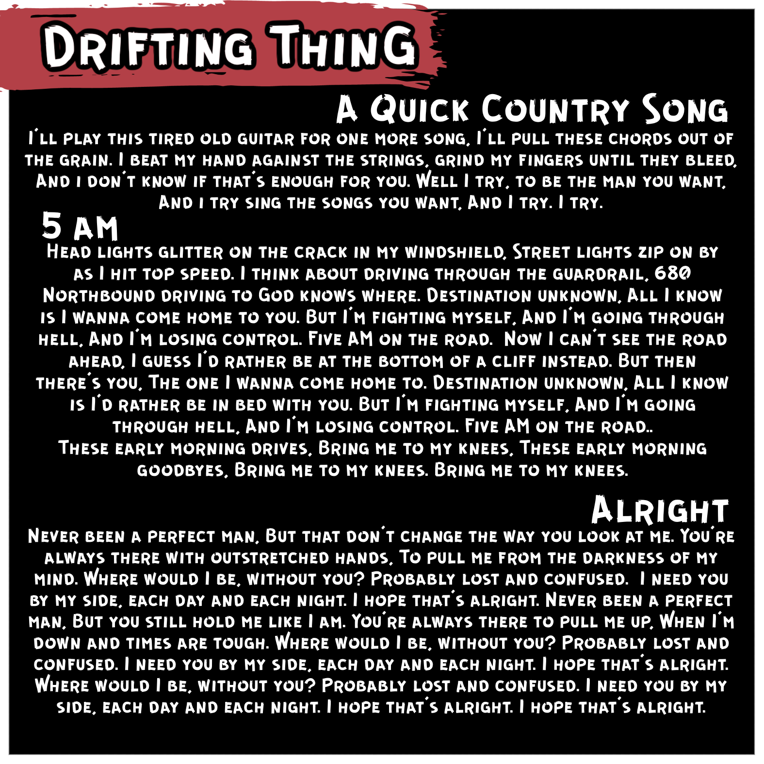 Coming out fresh from our hiatus in 2020, the re-release of Drifting Thing & Houseworth! These two incredible solo acoustic punk acts from Ohio will surely make you smile or allow you to cry in your car while commuting to work. These six songs have quite a variety from "A Quick Country Song" by Drifting Thing to the end of "Brutal" by Houseworth. Streaming everywhere! Cd here!